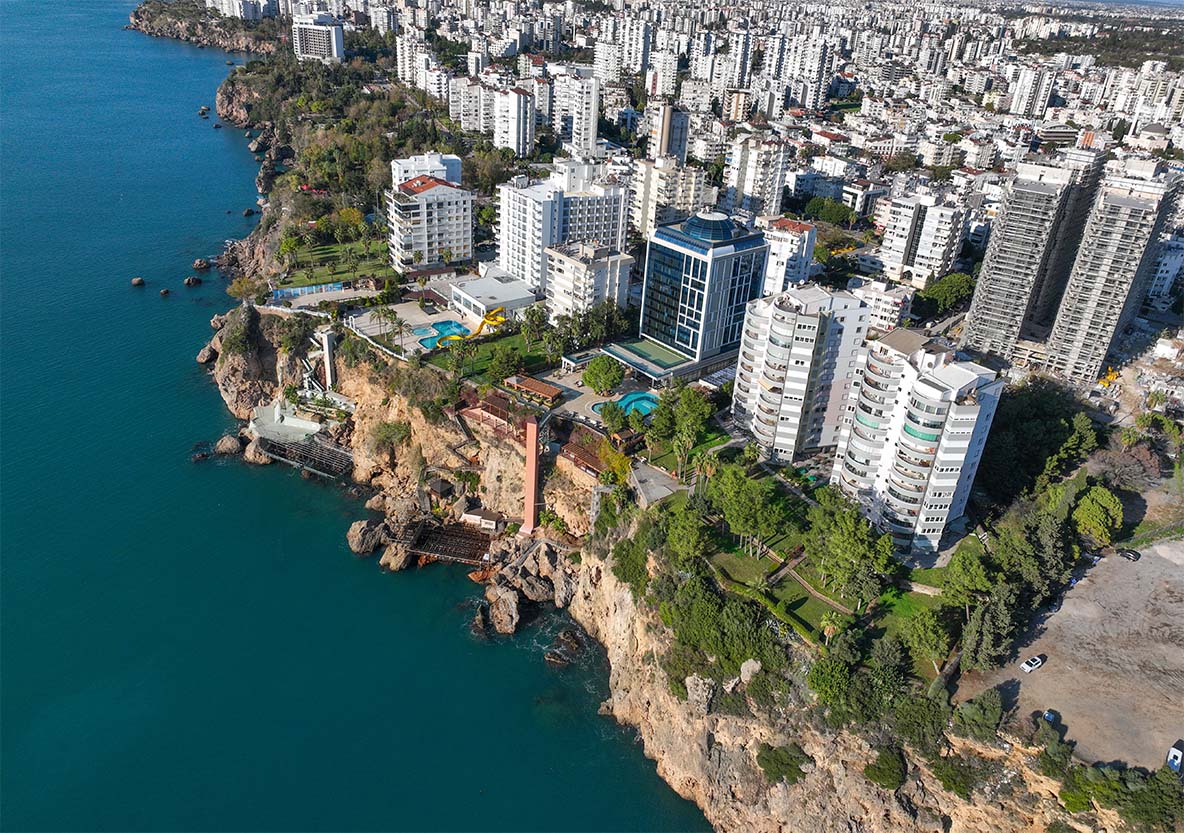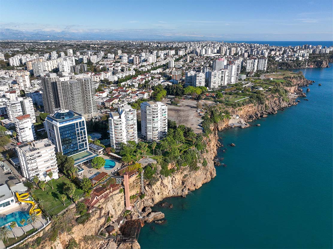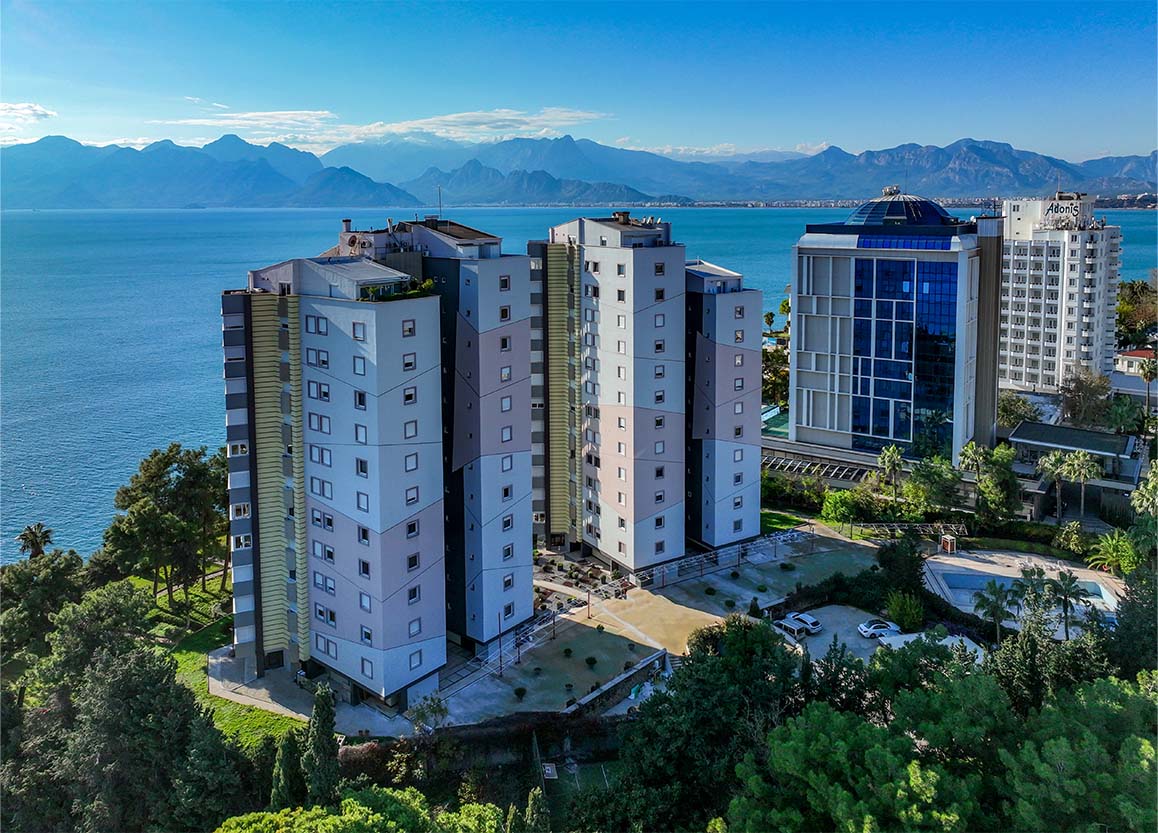 Antalya’nın en gözde yerlerinden biri olan Lara yolu üzerinde denize sıfır olarak inşa edilen Evren Sitesi konumu itibariyle hastane, okul, marketler, bankalar, restoranlar ve toplu taşıma gibi tüm sosyal donatılara çok yakın durumdadır. Çeşmeler ve çiçeklerle dolu güzel parklar, spor salonları ve alışveriş merkezleri yürüme mesafesindedir. Kayalıkların üzerindeki birçok güzel park bu tesise kısa sürede yürüyerek ulaşmak mümkündür.
